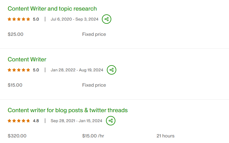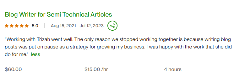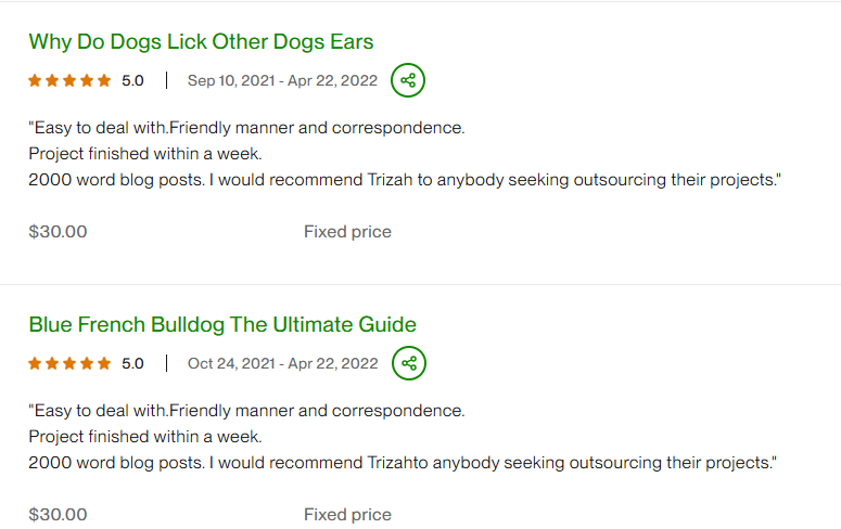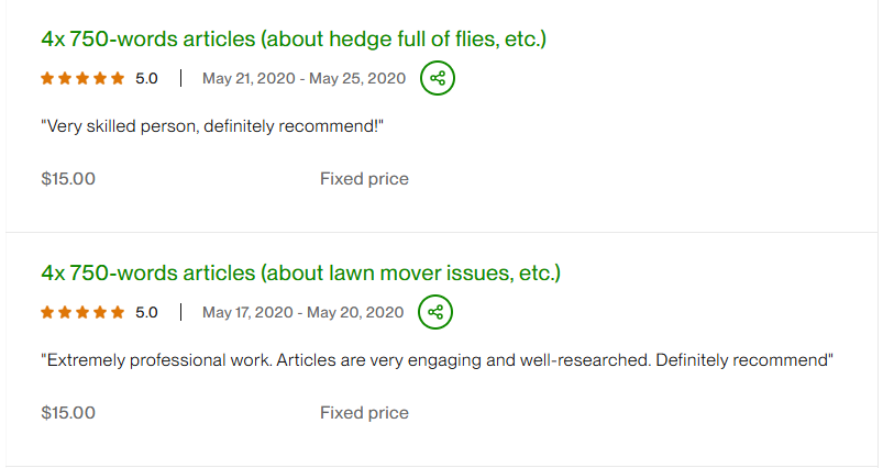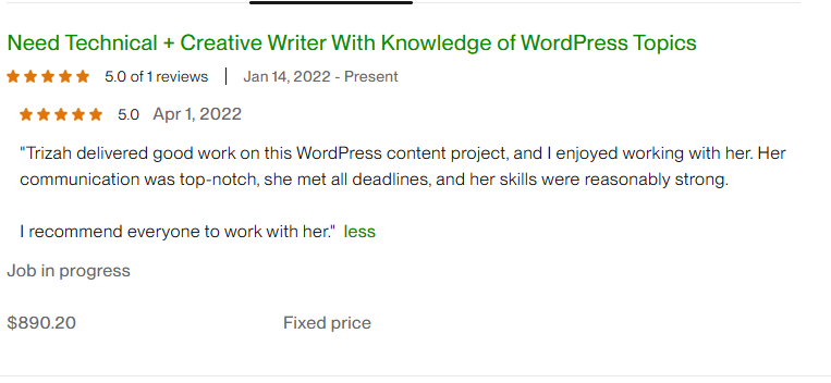 Have a look at some of my freelance reviews from clients I have worked with on Upwork. They are categorized in different sections. The reviews are from my Upwork profile, therefore credited to the platform.